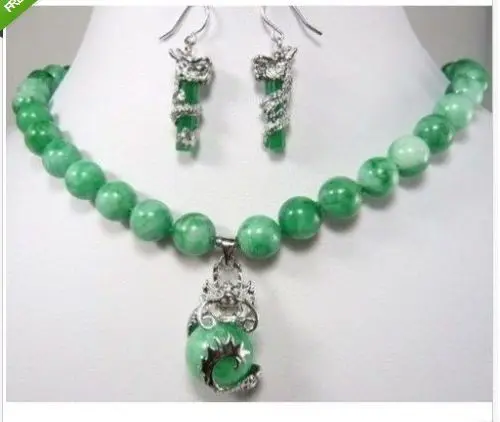 HIGH QUALITY beautiful color green gem dragon pendant necklace earring set Quartz Fine Bridal wide watch wings w
