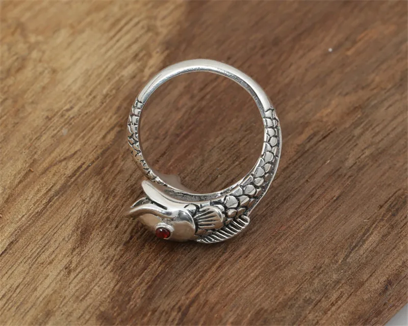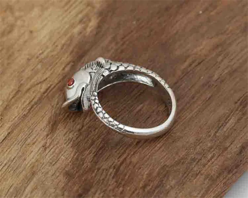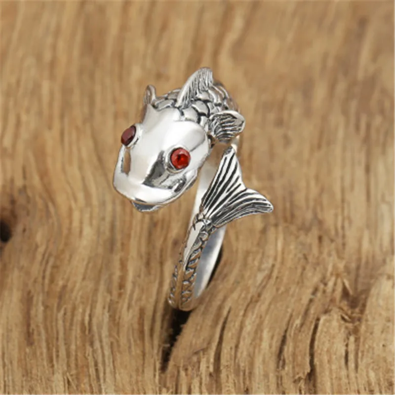 Best Genuine 925 Sterling Silver Thai Handmade Vivid Carp Fish Animal Ring Women Big Retro Antique Rings
