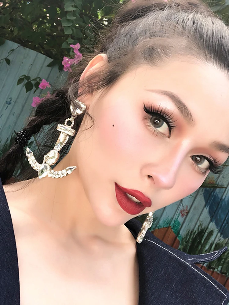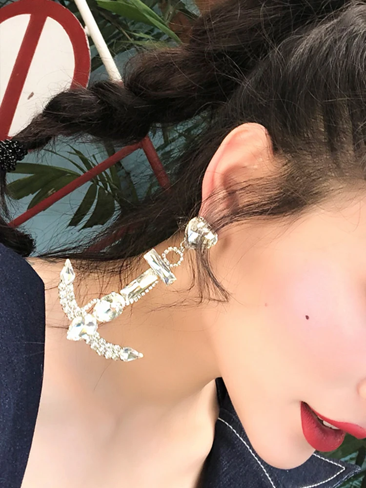 Cute Crystal Zircon Dangle Earrings for Women Jewelry Gift Anchor-shape Earrings Party Girl Drop Ea