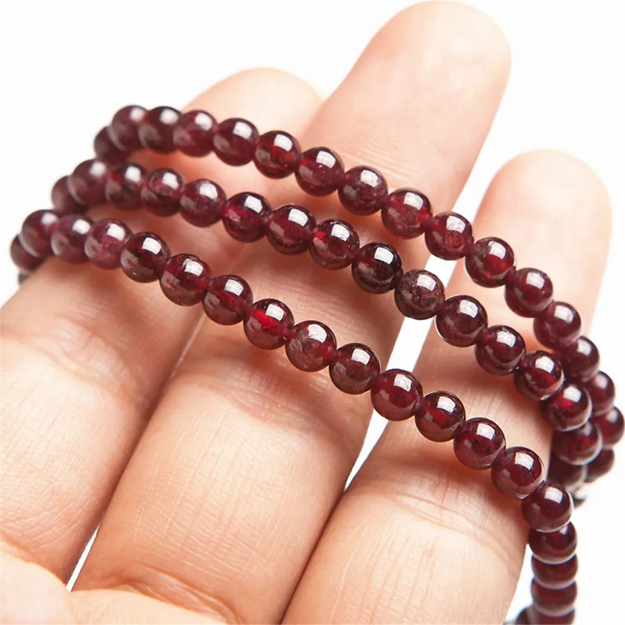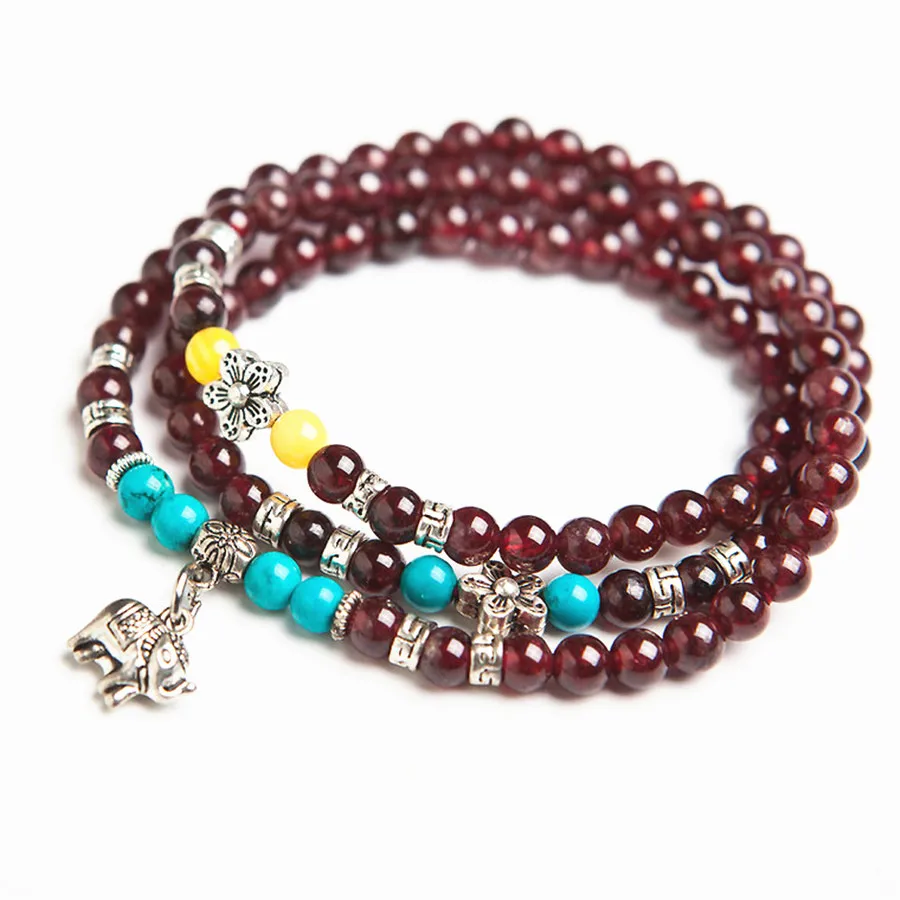 HOT Sale Fashion Silver Jewelry Bracelet With Elephant Pendant 6mm Natural Wine Red Garnet Crystal Round Bea