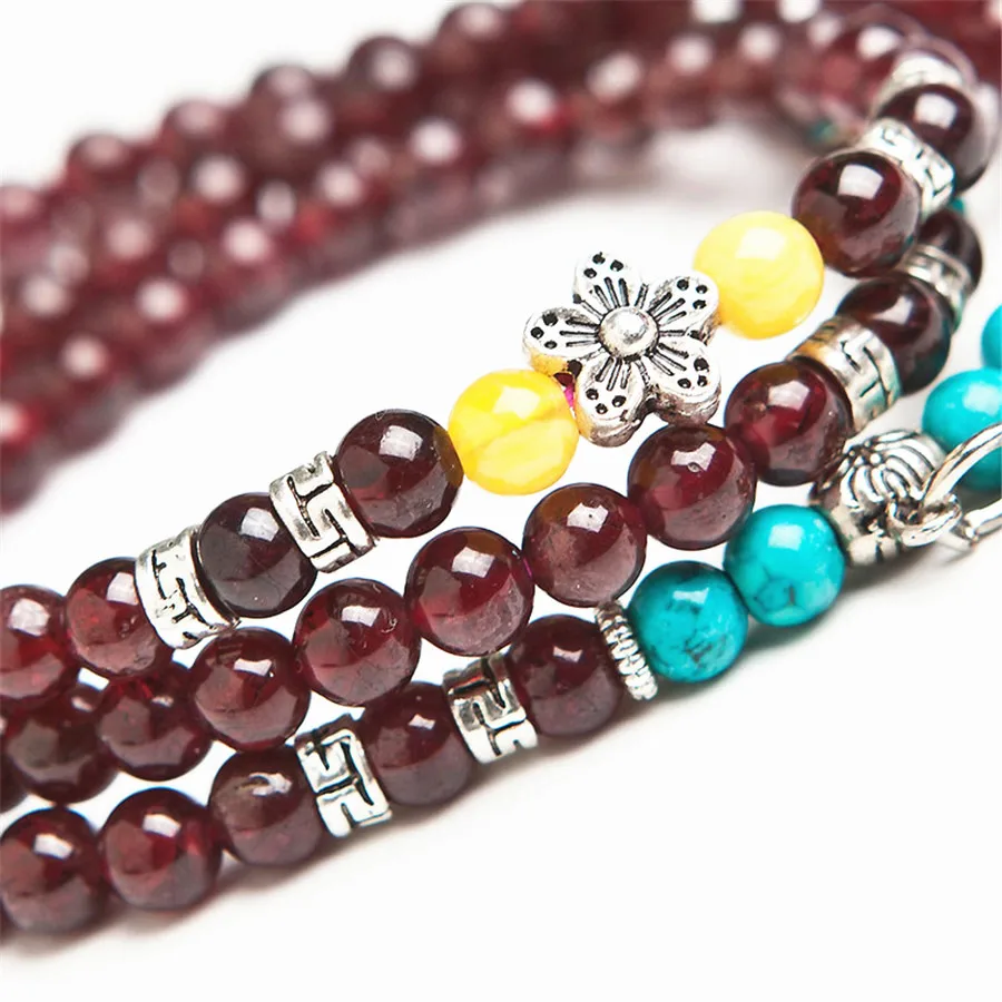 Fashion Silver Jewelry Bracelet With Elephant Pendant 6mm Natural Wine Red Garnet Crystal Round Bea