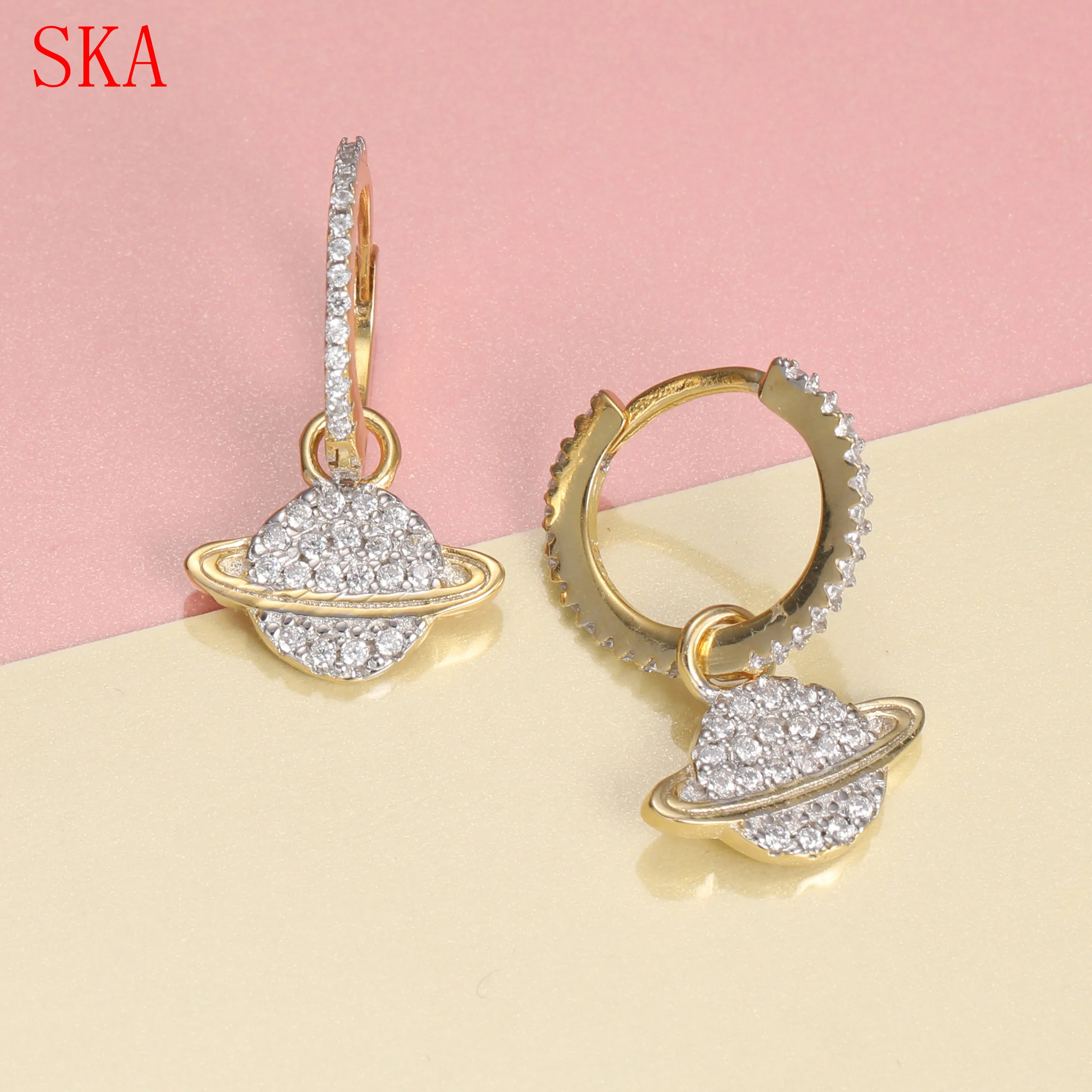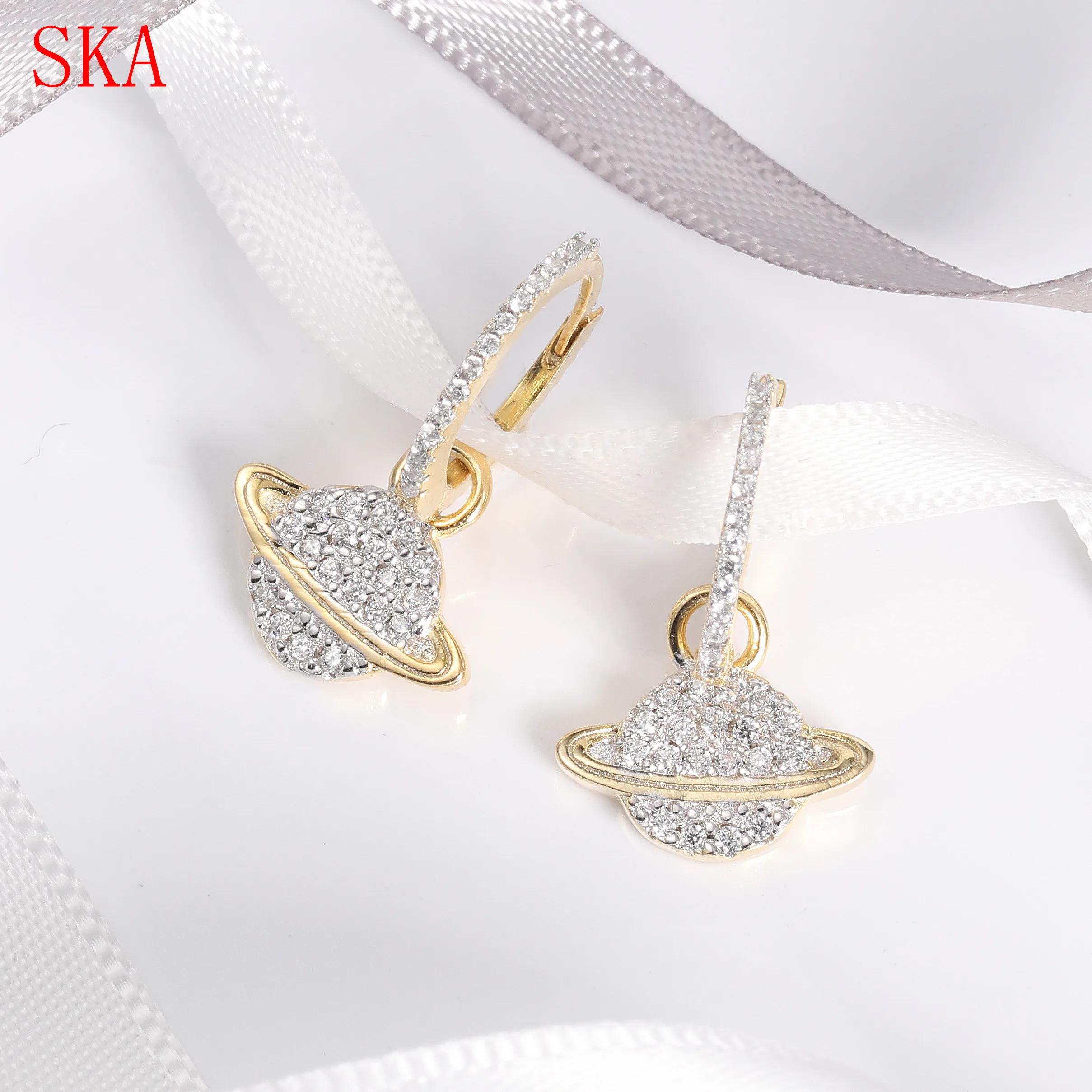 BEST QUALITY New Korean Jewelry Gold Round Planet Earrings For Women Asymmetric Earring 925 sterling silver vint