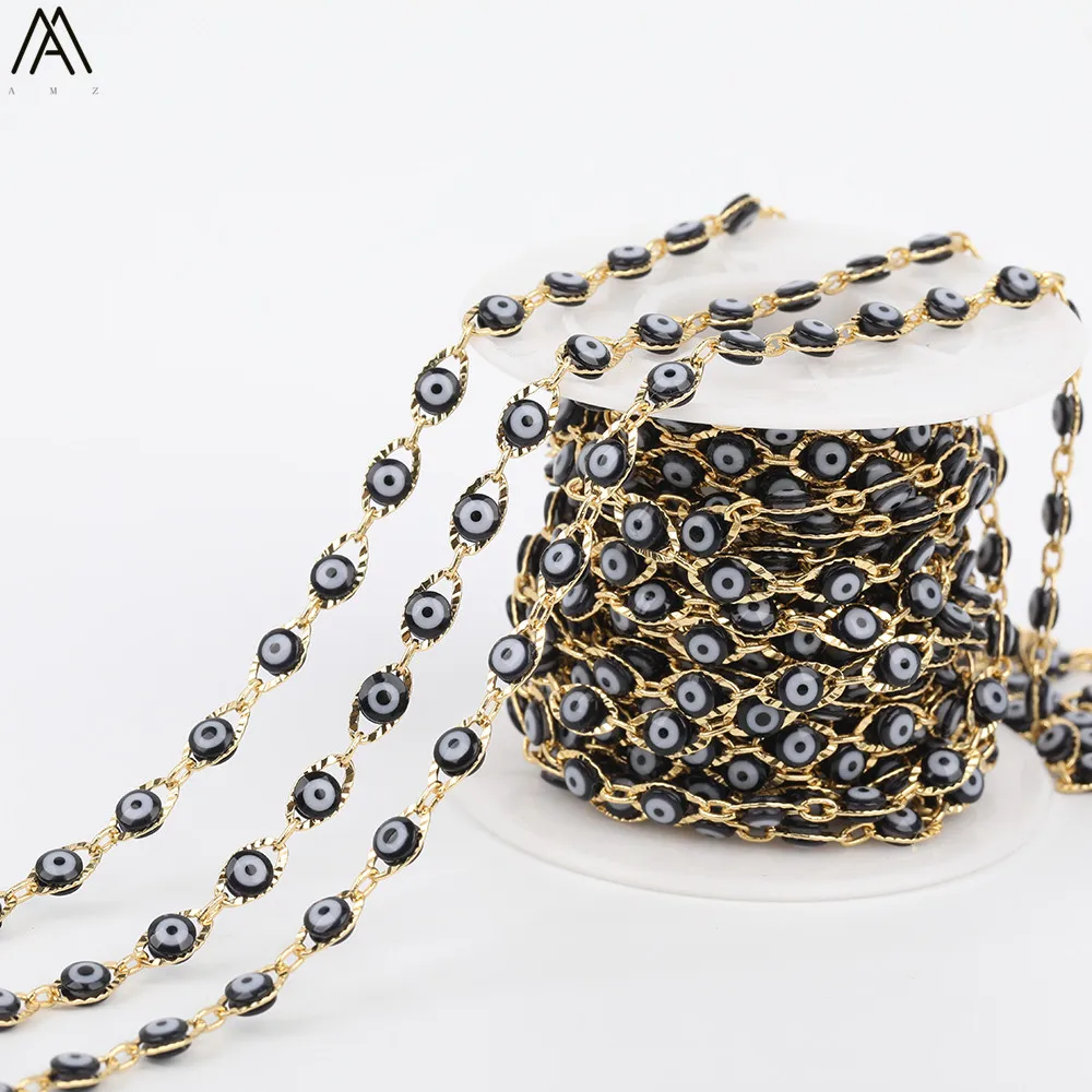REVIEW TOP SELLER 5meter 4mm Black Color Flat Round Evil Eyes Beads Rosary ChainsEnamel Beads Coin Chains Making Neck