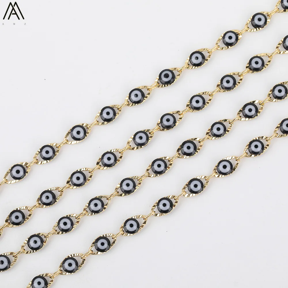 BEST SELLER 5meter 4mm Black Color Flat Round Evil Eyes Beads Rosary ChainsEnamel Beads Coin Chains Making Neck