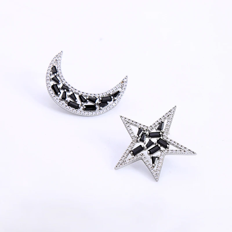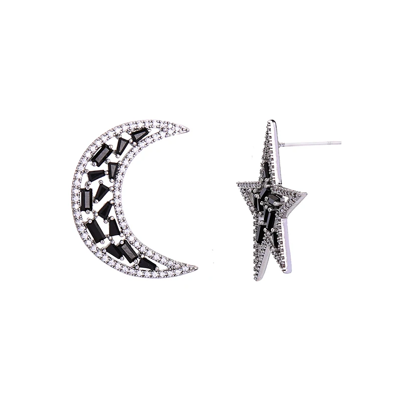HIGH QUALITY Mysterious Black Moon&Star Zircon Stud Earrings Asymmetry Punk Personalized Earrings For Women Fash