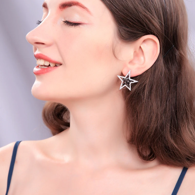 ORIGINAL Mysterious Black Moon&Star Zircon Stud Earrings Asymmetry Punk Personalized Earrings For Women Fash