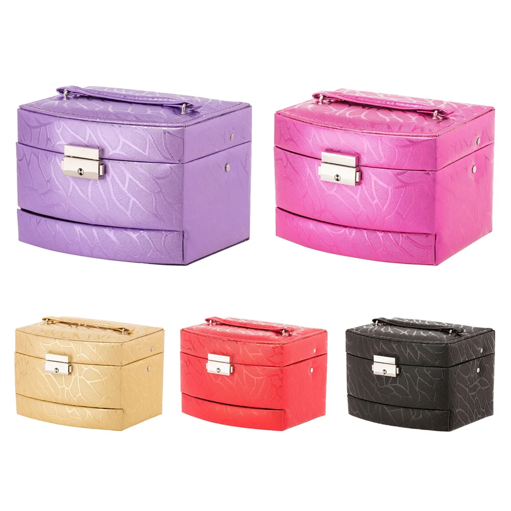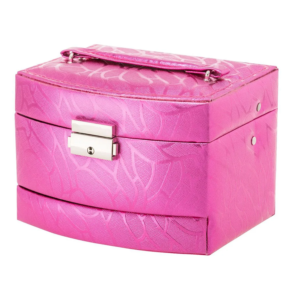 New Fashion Women's Jewelry Storage Box 3 Layers Necklace Glass Grain Semi-automatic Storage Contai