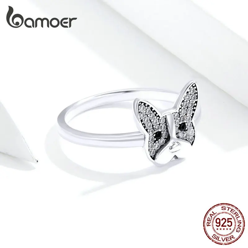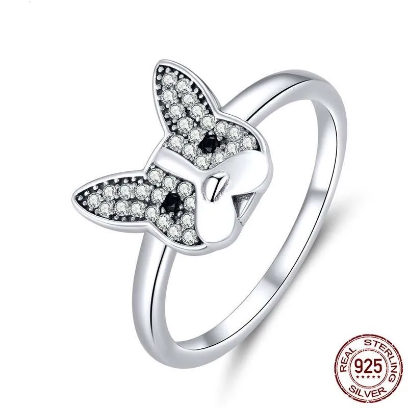 HOT SALE Genuine 925 Sterling Silver French Bulldog Finger Rings for Women Clear CZ Party Statement Silver 9