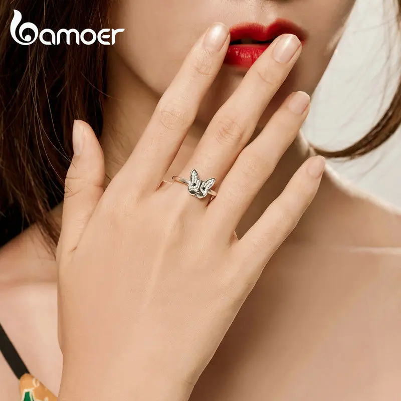 HIGH QUALITY Genuine 925 Sterling Silver French Bulldog Finger Rings for Women Clear CZ Party Statement Silver 9