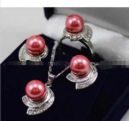 HOT SALE Prett Lovely Women's Wedding shipping> >>>>> Pink Rose South sea Shell Pearl Earrings Ring & Neckla