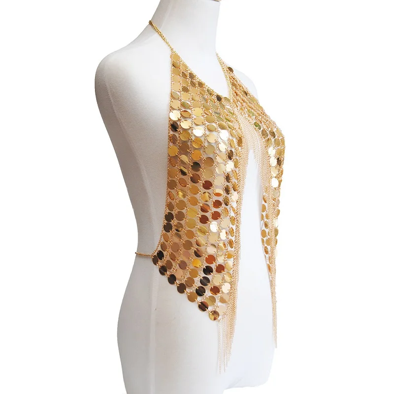 HOT Sale Bohemian shining sequins tassel wire bra chain necklace ladies bikini body metal alloy jewelry chai