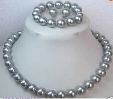 Women Wedding AAA 10MM Grey Shell Pearl Necklace Bracelet / Earring Set AAA style>new jewelry Quart